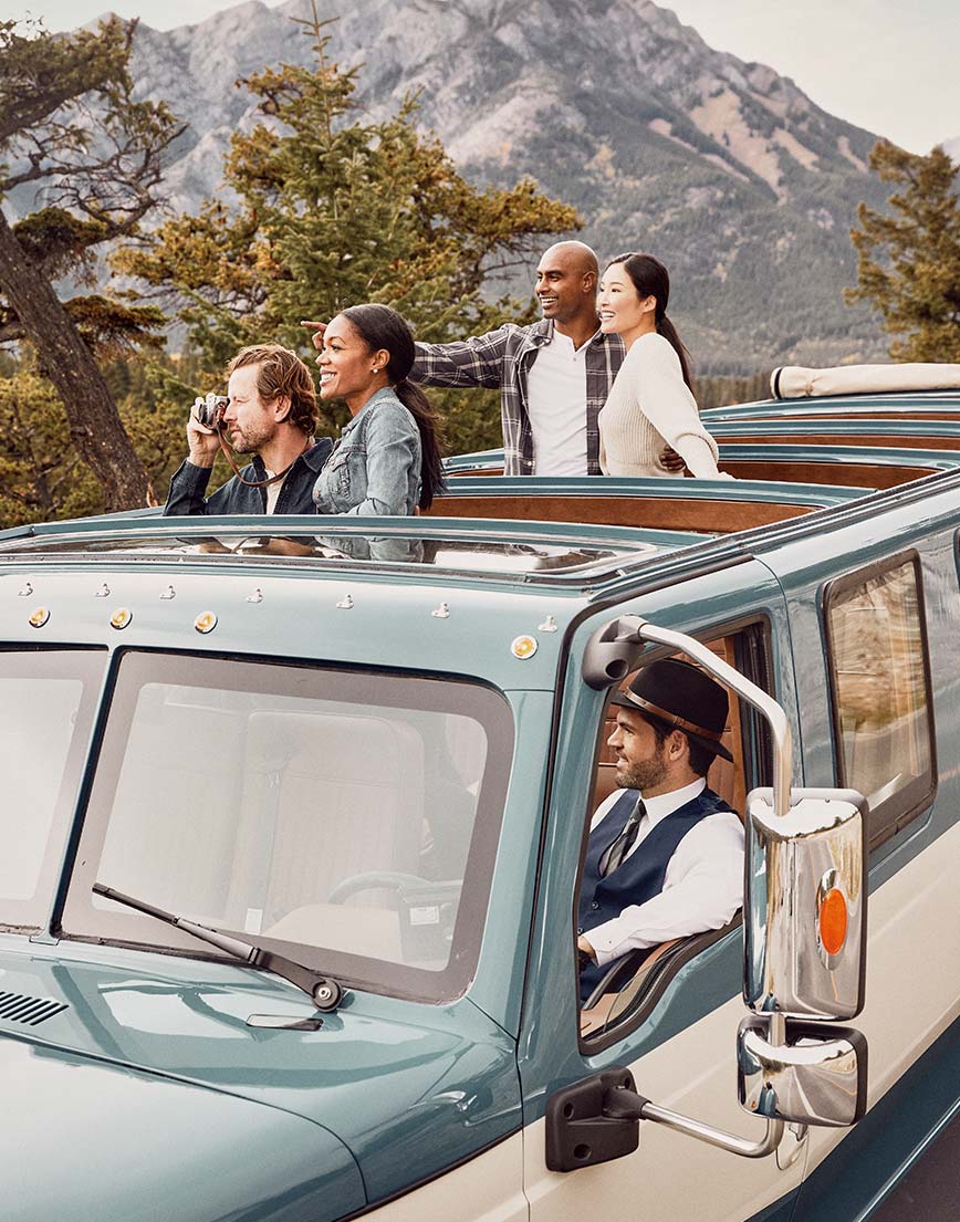 Our 1930s-inspired automobiles will tour your guests to Banff or Jasper's best sights in style. Customize your trip with 3, 4 or 5 stops or hop onboard for a luxurious VIP transfer to an in-town location. It’s today’s highlights, yesterday’s stories and classic, timeless views at every turn. And the most stylish way to tour your group around the Rockies!